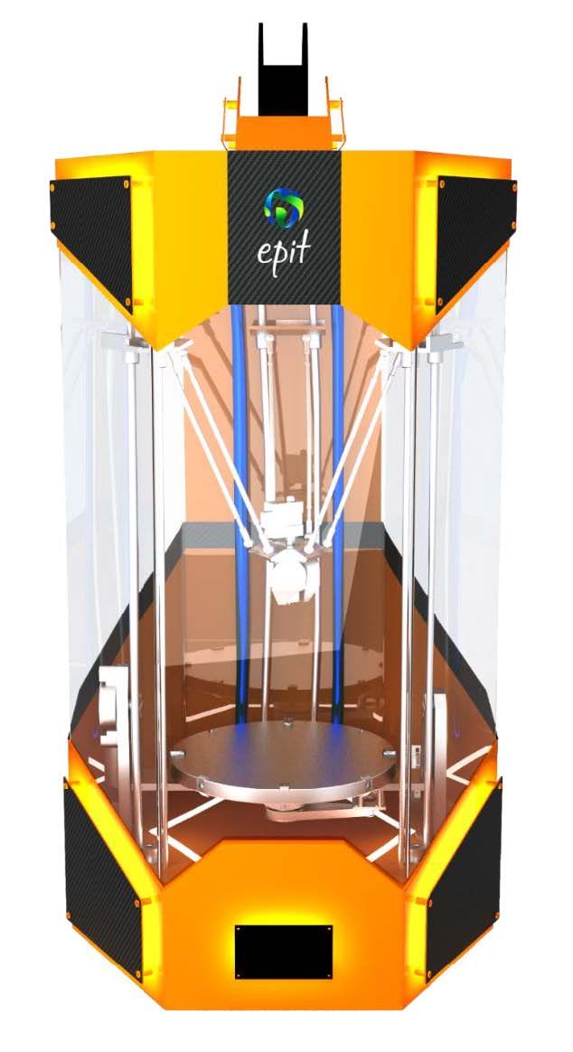 Для решения основных недостатков, возникающих при печати по технологии FFF, 3D принтер Epit 5.1 оснащён наклонно-поворотным столом, за счёт чего в комбинации с дельтовидной конструкцией перемещения печатающей головки удаётся достичь пятиосевого позиционирования рабочих органов принтера.