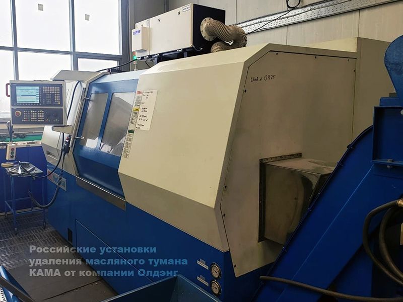 Установка удаления масляного тумана КАМА 500М подходит для удаления аэрозоли СОЖ из рабочей зоны токарных и фрезерных станков малого и среднего размера.