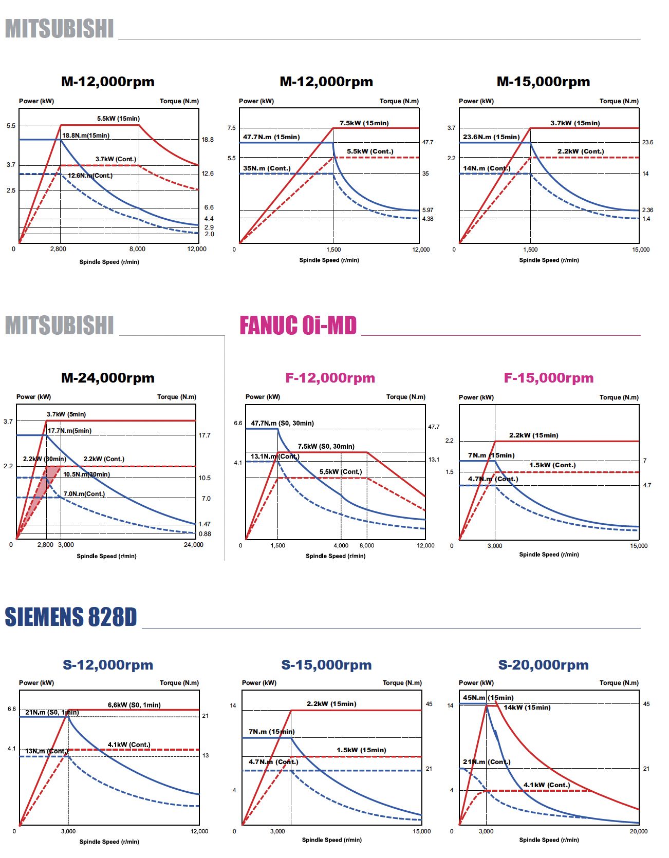 | Мощность шпинделя постоянно / 30 минут | 3,7 / 5,5 кВт. {2,2 / 3,7 кВт при шпинделе 15 и 24 тыс. об / мин.} {BT40: 5,5 / 7,5 опционально} |